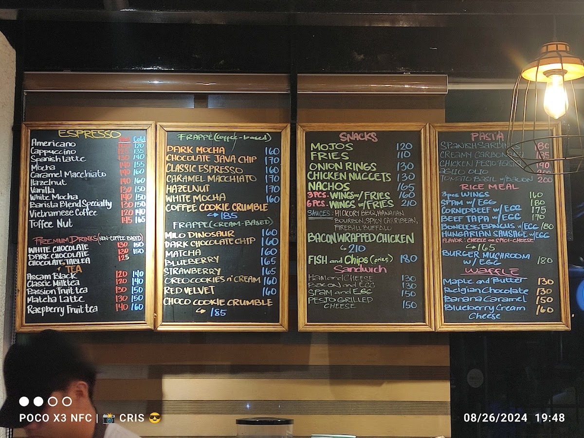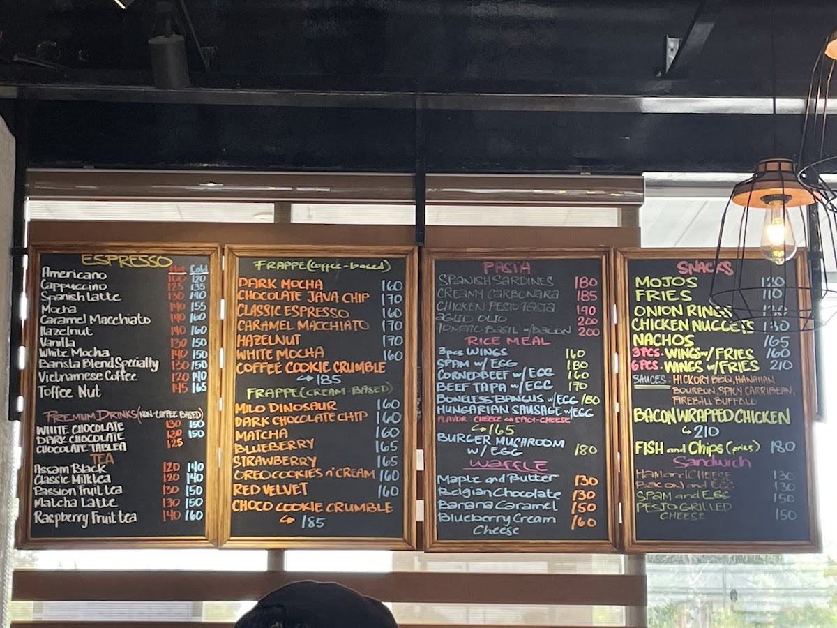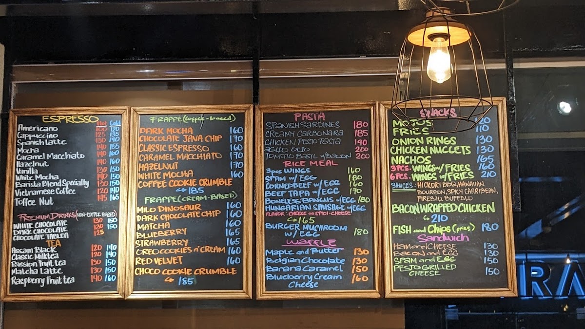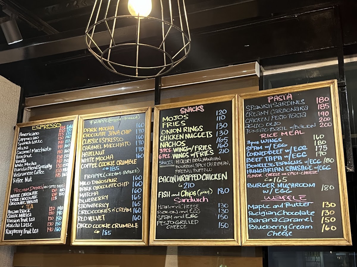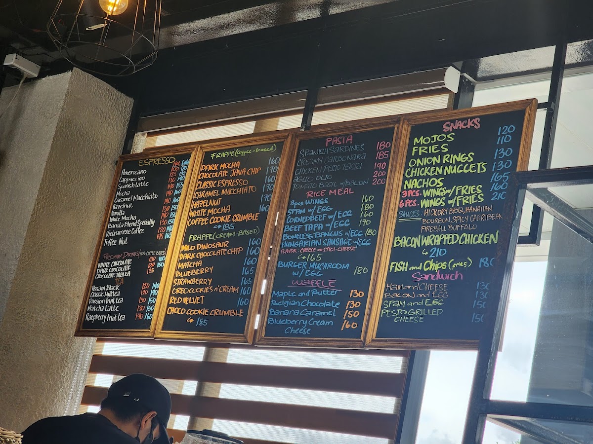 The menu features a variety of food and drink options suitable for different times of the day, including breakfast items, light meals, snacks, and coffee beverages. Visitors can expect a selection of rice meals, pasta dishes, and sandwiches, complemented by pastries and baked goods. The menu also includes snack items such as fries and chicken wings.